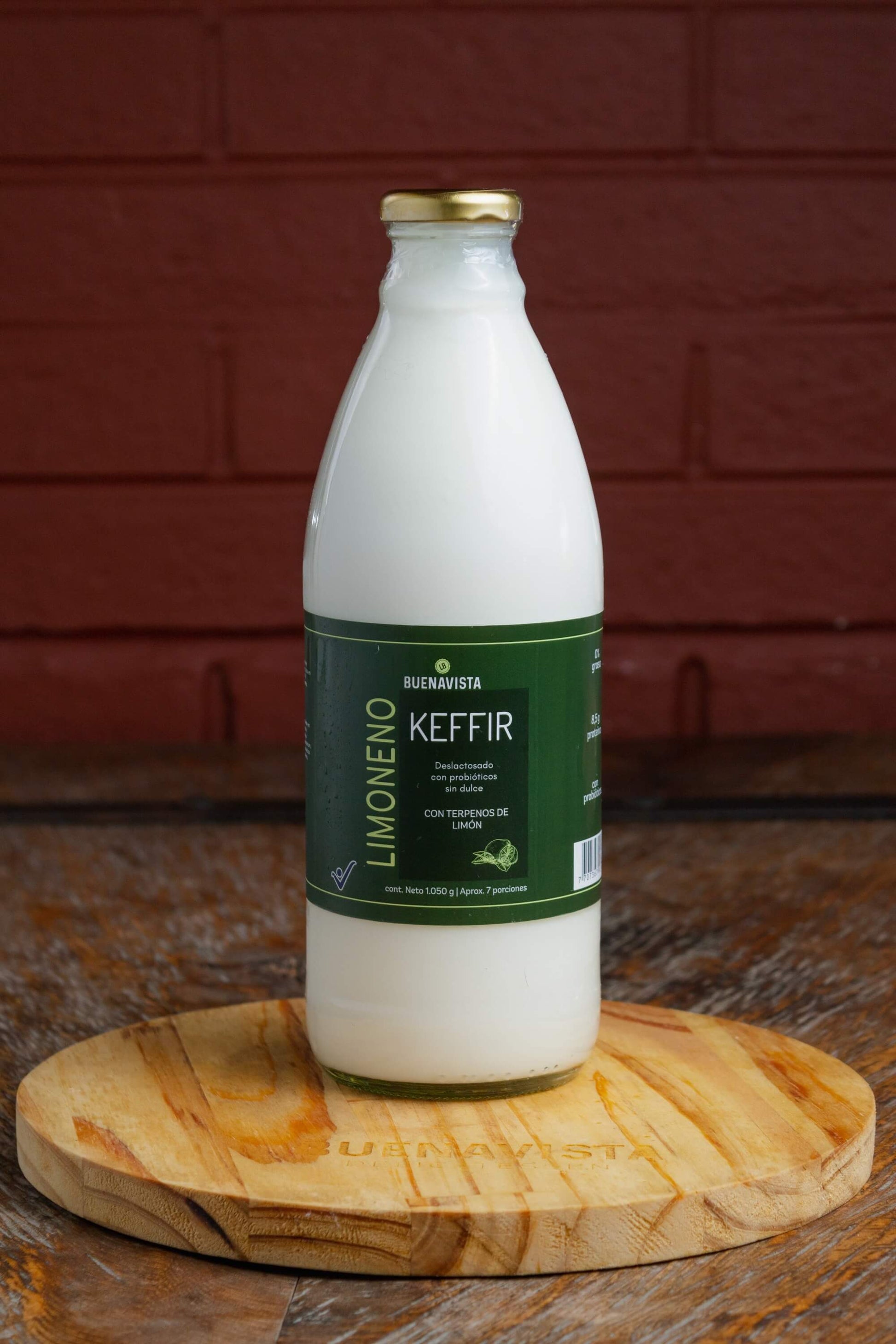 Keffir artesanal elaborado con leche de vaca semidescremada, libre de grasa y sin adición de azúcar, enriquecido con probióticos y prebióticos. Contiene terpenos naturales de limoneno, conocidos por sus propiedades antioxidantes y su aroma cítrico refrescante.