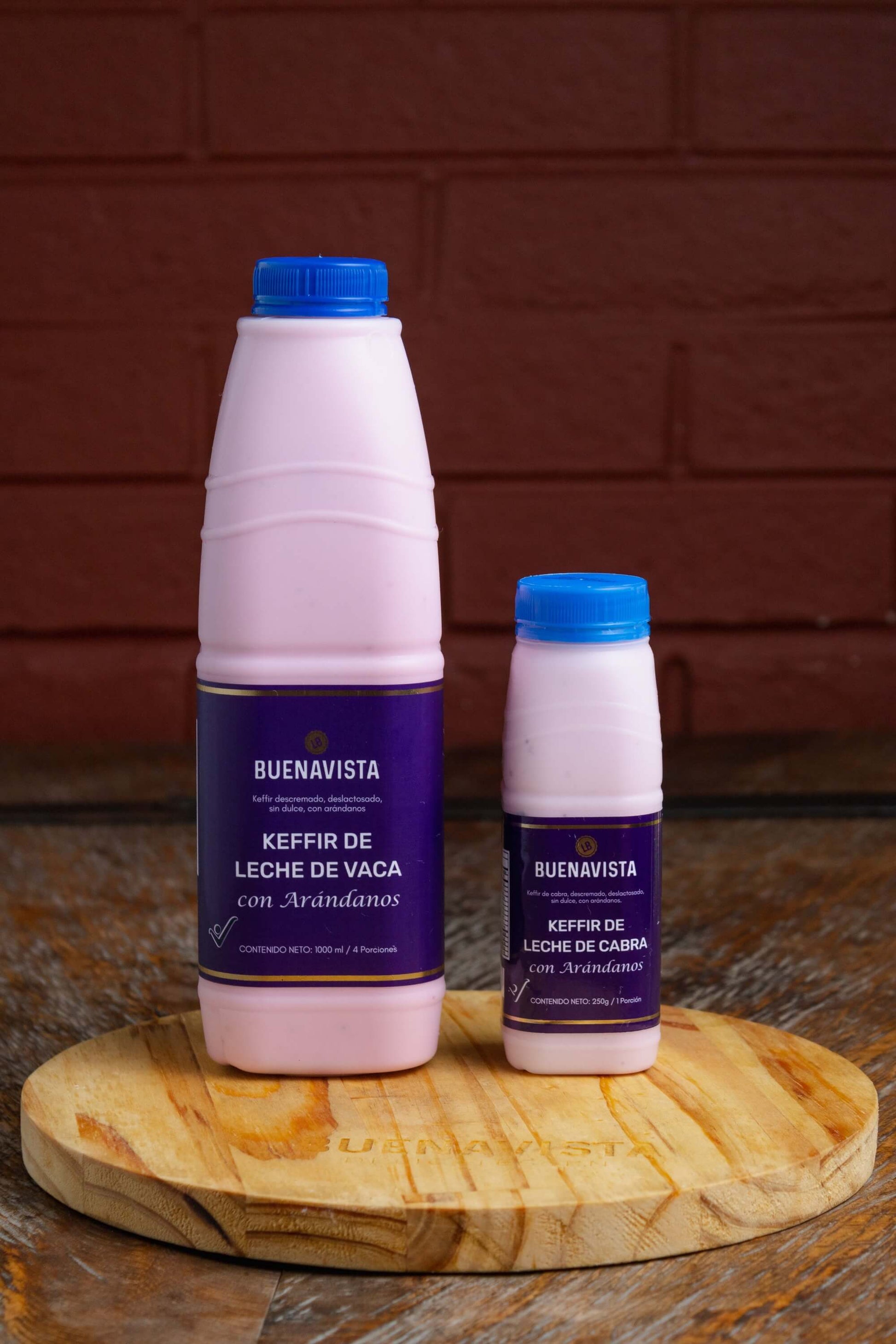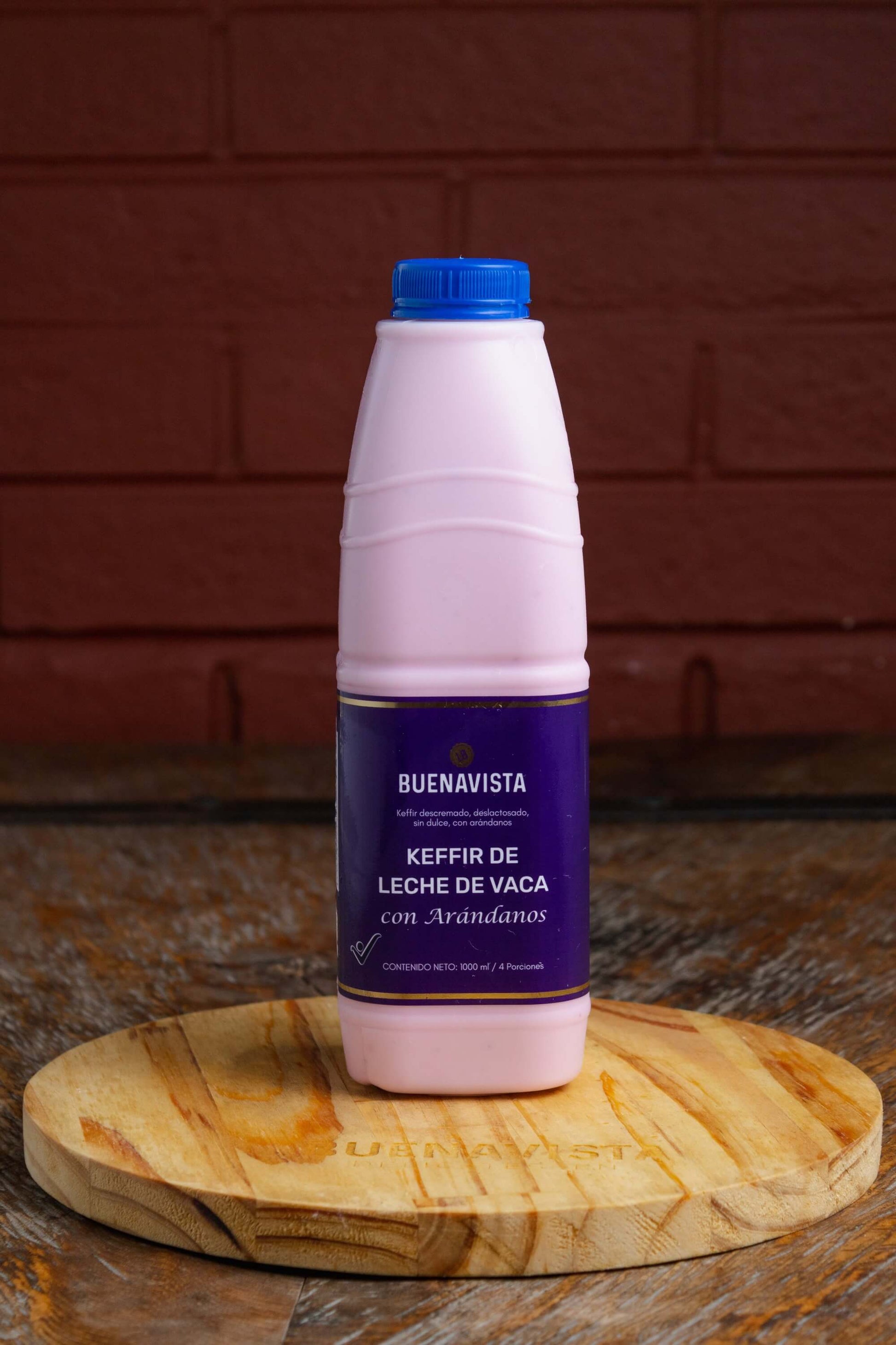 Keffir artesanal de leche de vaca semidescremada, libre de grasa y sin adición de azúcar, con arándanos azules naturales. Esta bebida fermentada contiene siete tipos de microorganismos probióticos que utilizan la lactosa como fuente de energía, contribuyendo al equilibrio de la microbiota intestinal y favoreciendo una buena salud digestiva.