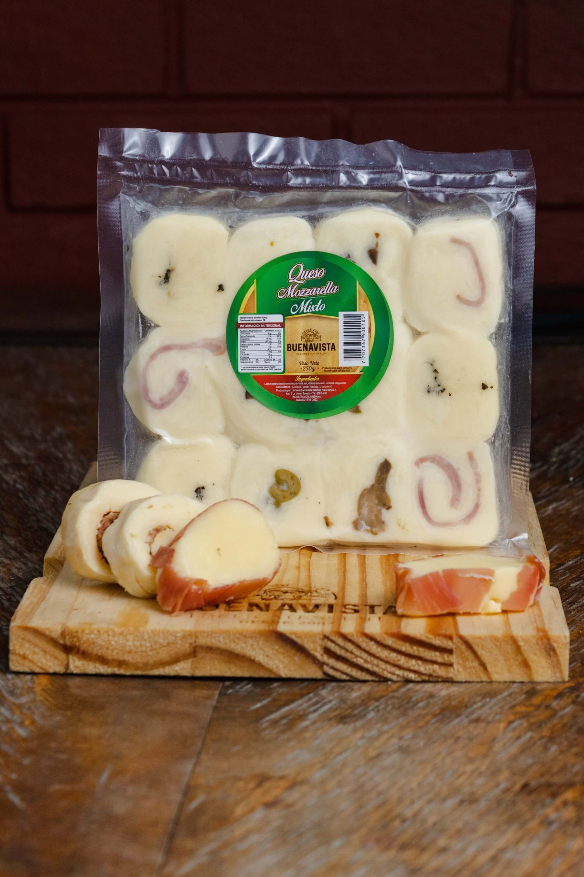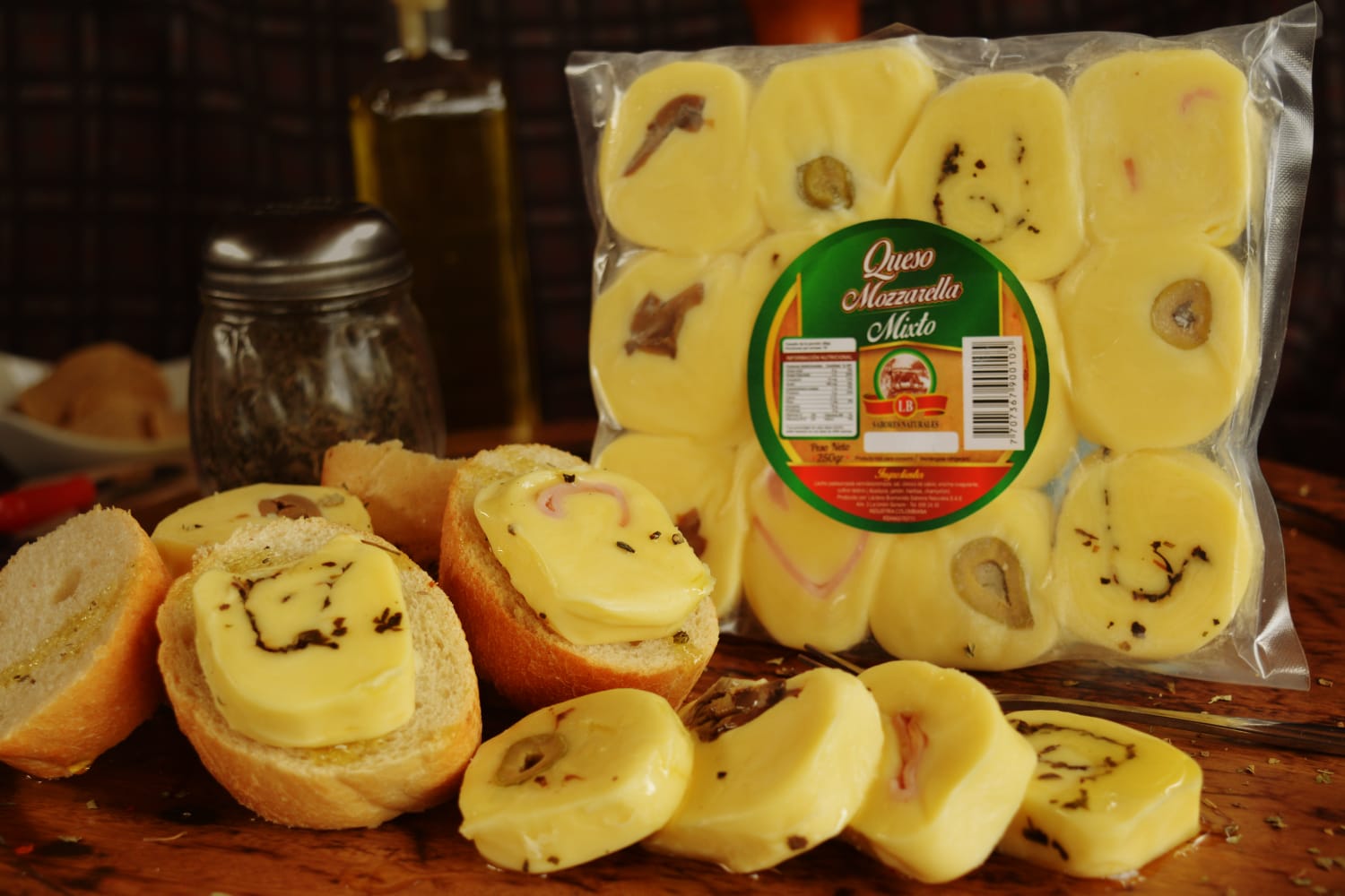 Queso mozzarella artesanal elaborado con leche de vaca semidescremada y cultivo láctico, presentado en doce medallones con diferentes sabores: finas hierbas, aceitunas, champiñones y jamón ahumado. Su textura elástica y su sabor suave con notas aromáticas lo convierten en una opción versátil y memorable.