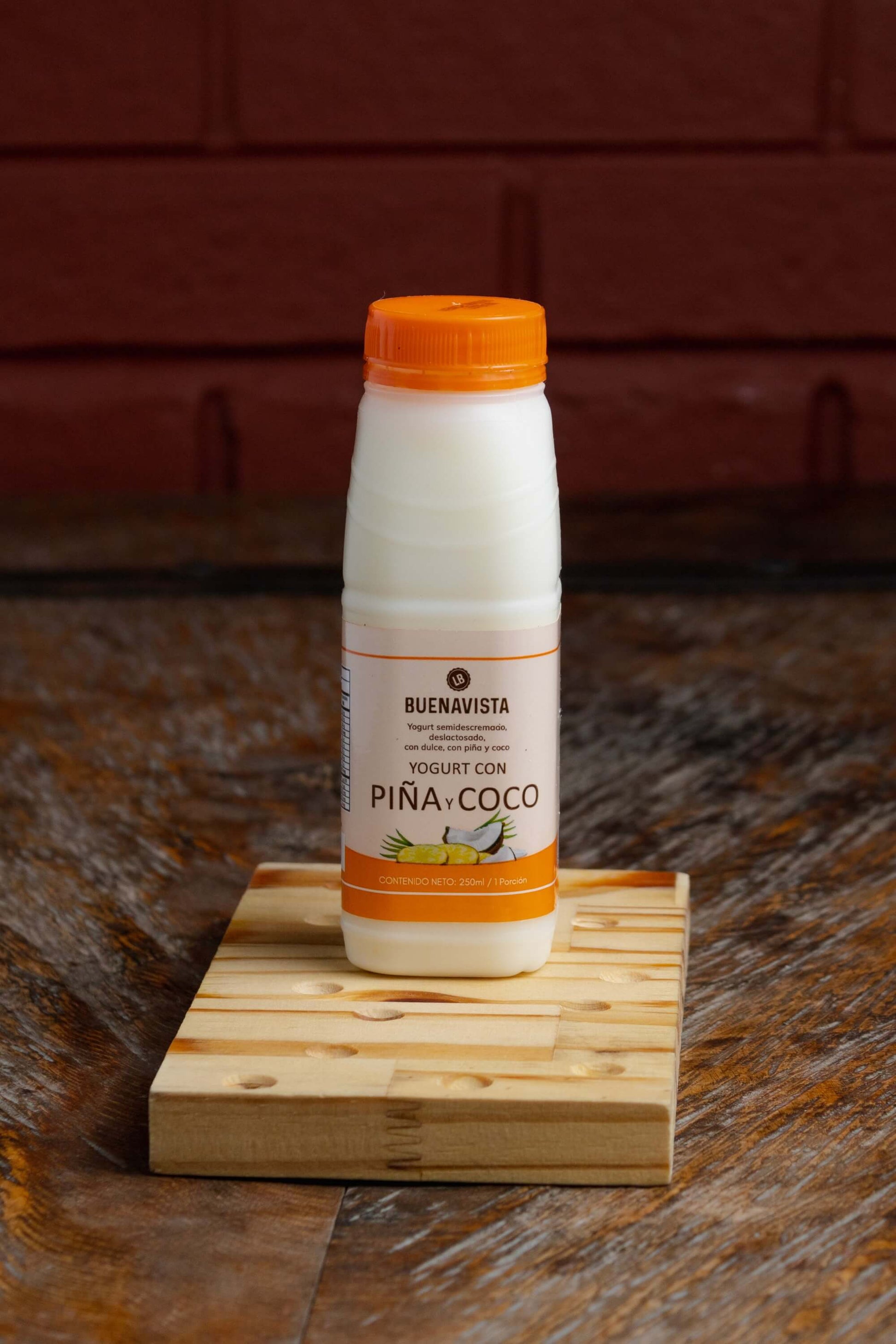 Yogurt artesanal de piña y coco, elaborado con leche de vaca semidescremada y deslactosada, enriquecido con probióticos y prebióticos. Contiene trozos de piña y hojuelas de coco natural, que aportan textura y un perfil frutal tropical con notas dulces y refrescantes.